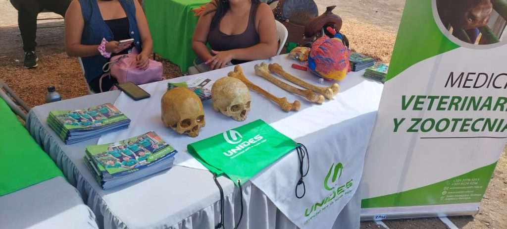 Durante el evento, UNIDES contó con un stand informativo en el que se presentaron planes de estudio, asesorías académicas, oferta educativa y diversos elementos de interés relacionados con las ciencias médicas y veterinarias. Entre las exhibiciones destacaron hozamentas humanas y animales, las cuales llamaron la atención de los visitantes al mostrar de manera práctica el enfoque científico y profesional de ambas carreras.
